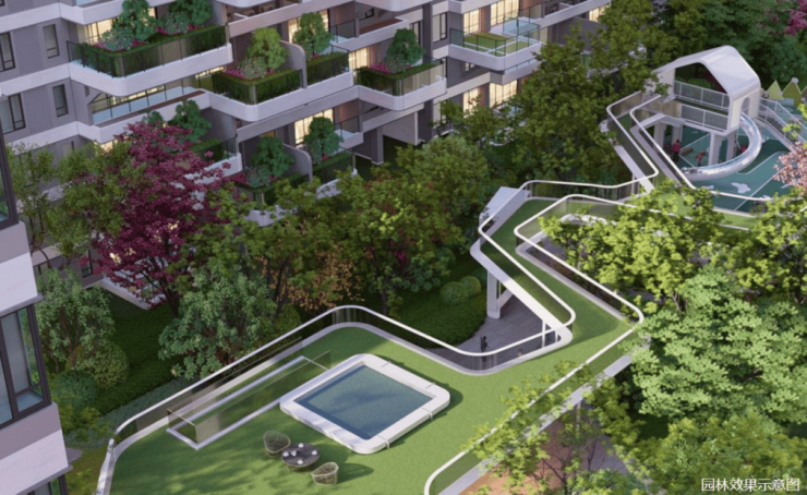 率先采用第四代森林花园住宅,又称为立体园林生态住房、城市森林花园建筑。