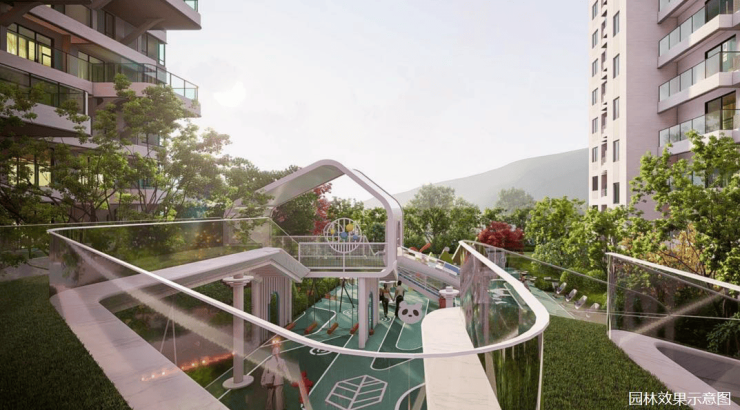 小区内部引入原生山体,以山为核,依托落差强化视野、丰富功能、设计精巧,打造景观视觉走廊。