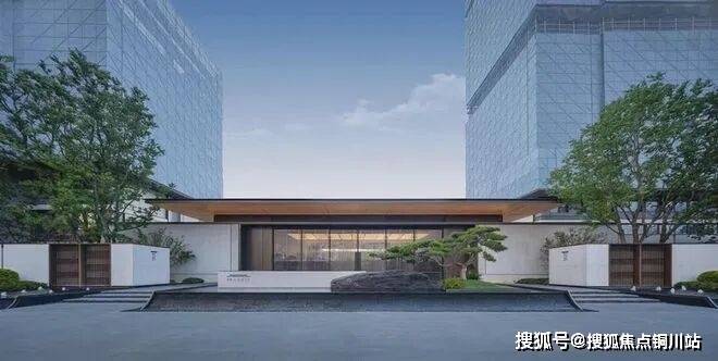塔冠设计将中式屋檐与现代极简美学相融合,呈献极简东方的大美意象。外立面以昆石同色石头,搭配现代铝材、高透玻璃,焕新城市人文天际线。镂空金属、木纹铝板、错缝石材拼接,精奢演绎山水纹理,于细节处呈献精微与宏大的东方造物之境。