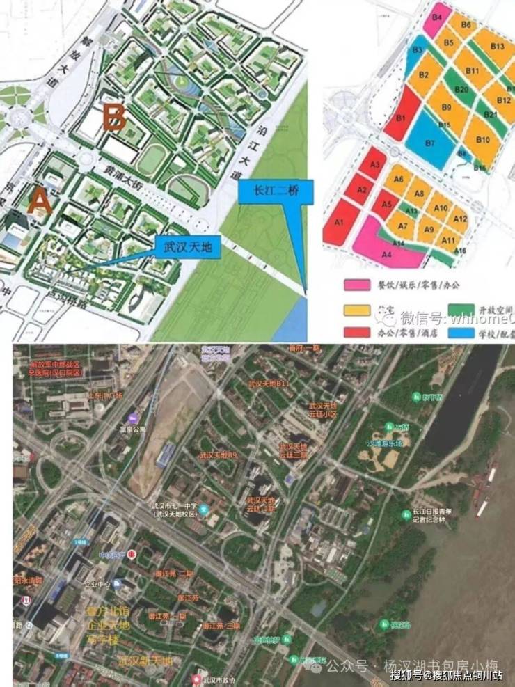 武汉天地总体规划以长江二桥为界分为A地块和B地块。如今项目已开发超20年,前期所有地块的住宅也售罄了。