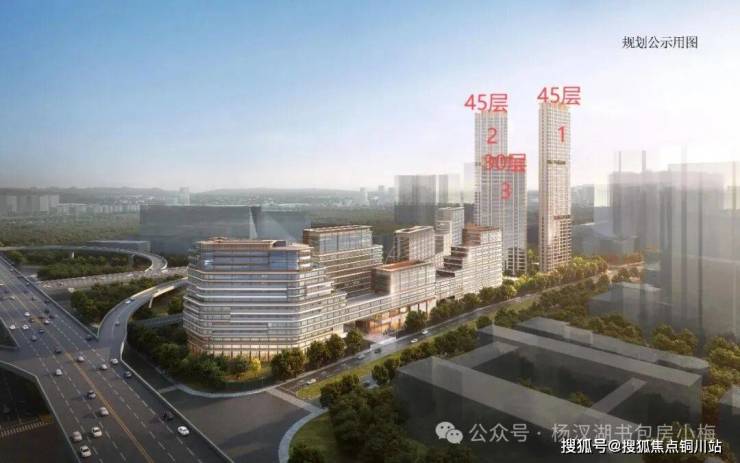 该地块将分为两期开发,一期是住宅,二期是商服。靠近黄浦大街一侧是二期商服(商业体+养老用房)靠近壹方北馆一侧是住宅项目。住宅项目包含3栋住宅共约226套房源,户均建面约173平。所以定位为改善群体。该项目1、2号楼是45层楼层,3号楼30层。