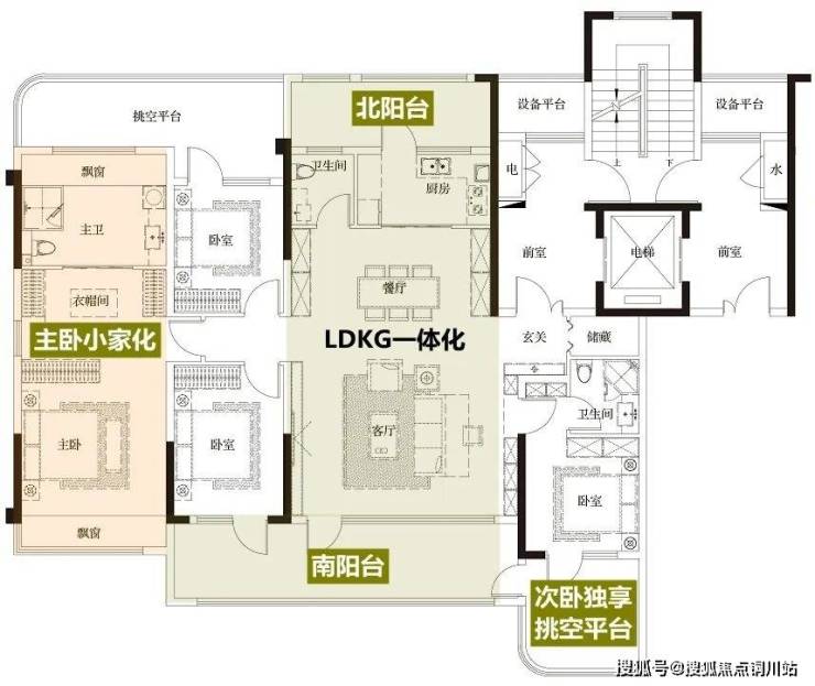 举个例子,新元序的小高层、洋房产品奇数层,采用南北双开敞阳台设计,北向次卧则与挑空露台相连。