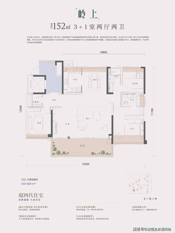 比如,建面约150㎡的户型实得面积可达约160㎡,堪比传统三代住宅一套建面约200㎡以上的户型,或者其他四代项目建面约177㎡以上的产品;