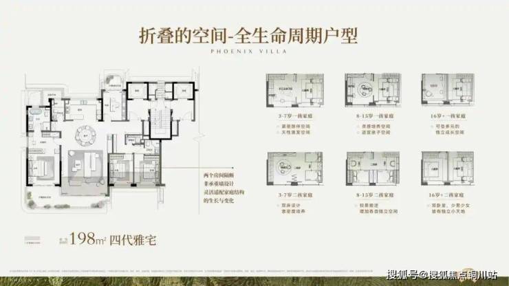 值得关注的是,凤栖云庐四代宅72套房源,居然做了12个主力户型。这种定制化逻辑能让不同家庭匹配到适合自身需求的露台组合。