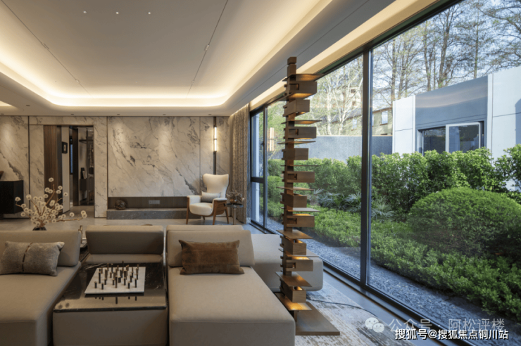 采用弧形外延式门廊、金属线条与大面积玻璃相结合打造的洋房单元入户门,以及颇为讲究的地面铺装,从整体规划到细节拿捏都非常到位。