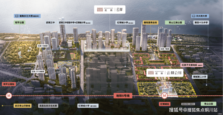 华侨城红坊规划总建面约200万方,同时占据了长江主轴重点段、青山滨江、红房子亮点片区等多个重磅标签,其体量之大、造城之势在青山滨江乃至整个武汉都难逢敌手。