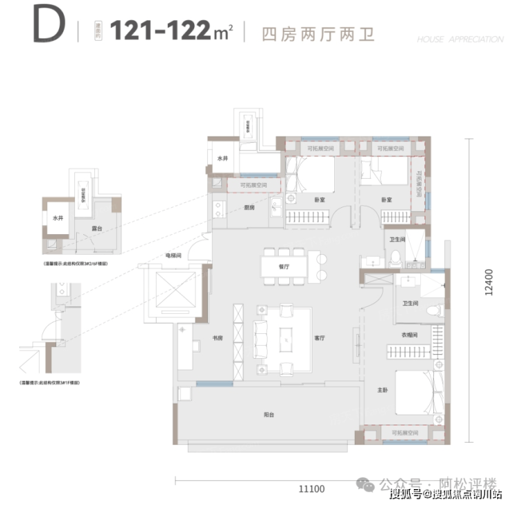 →撬动建面约140平以上的极致功能性,实现两房到四房的灵活切换: