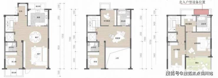 合院为4房3厅4卫设计,二层挑空,从视觉上就拉长了空间高度,采光也更加通透,三层带露台,住户可自行打造空中花园、户外茶室、儿童乐园等多功能空间。