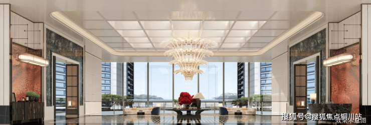 值得一提的还有它的建筑颜值,以绿城现代风格大宅立面为基调,采用了全景大玻璃幕墙,做到了观景视野最大化。在局部还跟济南的在地文化做了结合,整体横向挑檐搭配风格化装饰线条,呈现“凤凰展翼”的姿态,跟业主的身份相匹配。