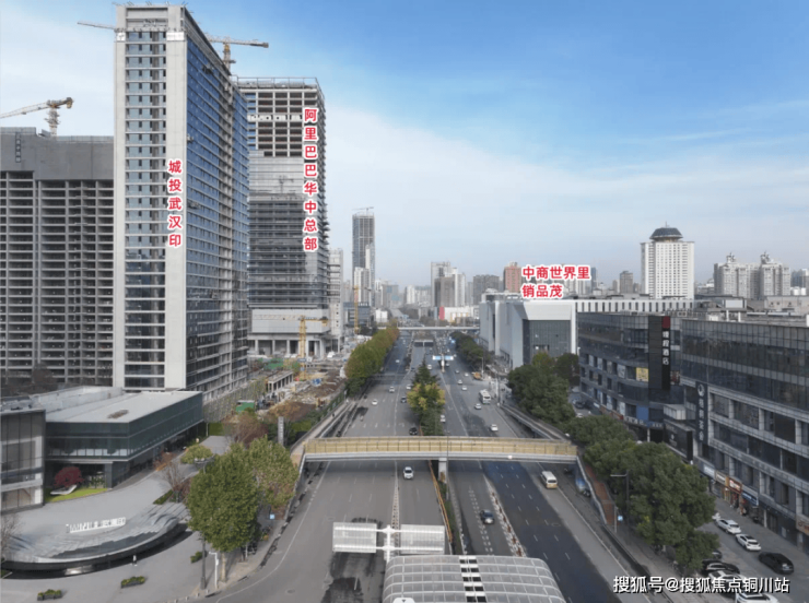 其中,作为居住配套的重要代表,一座城投·武汉印紧邻阿里巴巴华中总部之侧,对望中商世界里·鹏程销品茂购物中心,三者之间形成了板块产商居紧紧嵌合的“金三角”。