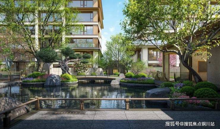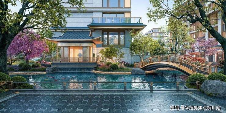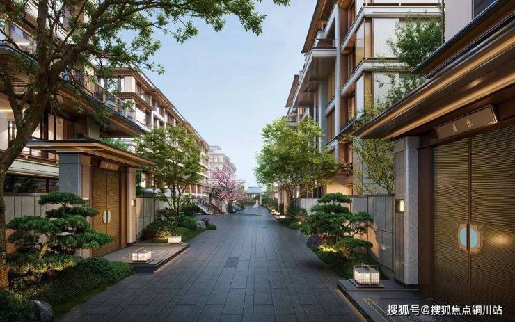 项目重金打造约500米滨河步道,贯穿南北双地块形成「一轴一环两园」格局,通过垂钓台、亲水步道等四大主题空间联动园林十六景,实现「出门见河、推窗见景」。归家门仪复刻《仙山楼阁图》威仪,63米广场、32.8米宽檐门头、11.2米高屋脊,五间一启的望族尺度搭配七阶台阶与瑞兽麒麟,寓意平步青云、祥瑞安宁。园林取法可园、沧浪亭等名园,方塘观鱼、枫桥烟雨等十六景串起游廊水榭,古木间暗藏宋词意境,尽显宋式雅致。