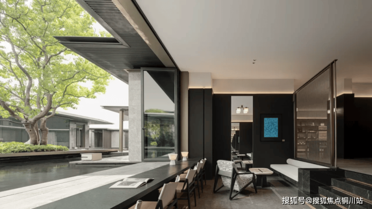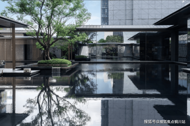 二重中心水景融合苏式园林独有的叠山理水艺术,运用流动且空灵的设计手法,打造出一个充满意境的景观空间。在这里,“一峰耸立如太华千寻,一勺波光似江湖万里”,生动展现了山水之间的诗意境界。秉承“曲则全”的哲理,结合东方美学的现代摄影视角,呈现一场视觉与心灵的盛宴。