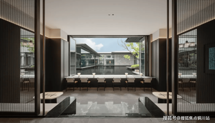 一重水院汲取木守西溪酒店的设计精华,以水为灵魂,泰山之巅的珍贵松树在碧波中傲然挺立,白雪公主般的透光玉石绽放着璀璨光芒。在水的倒影之下,地下会所的高低起伏犹如波澜壮阔——这一水、松、玉共融的三重意境,不仅呈现出视觉上的极致奢华,更赋予了生活以内涵与价值。正如古语所云:“君子迎客,如沐春风。”