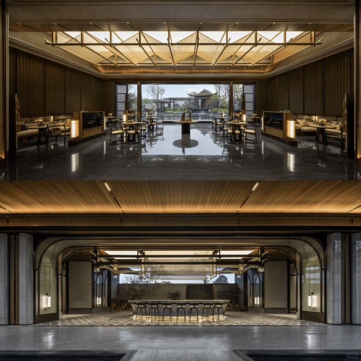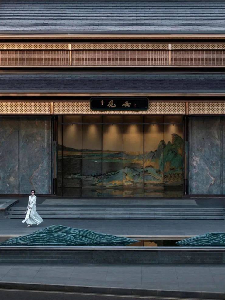 宋韵之美,追求简约而不失纯粹,强调形式与功能的和谐相融。在细节处理上匠心独运,装饰工艺精雕细琢。设计师巧妙转译,重现宋代建筑的经典审美,他们提取画中建筑元素,如飞檐、挂落、寻杖,巧妙解构后重新组合,不仅保留了其原有的装饰韵味,更赋予了新的艺术内涵。
