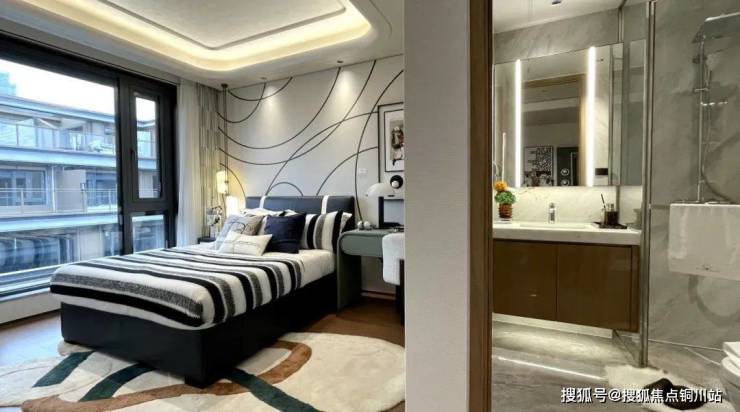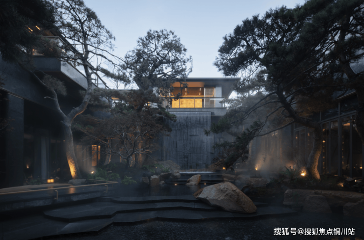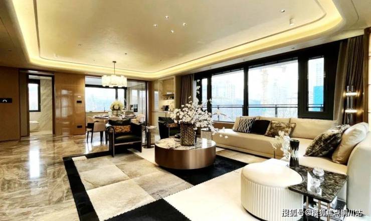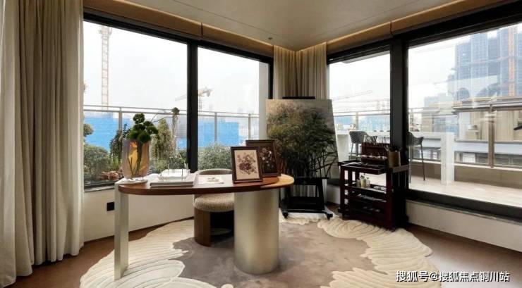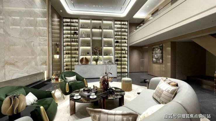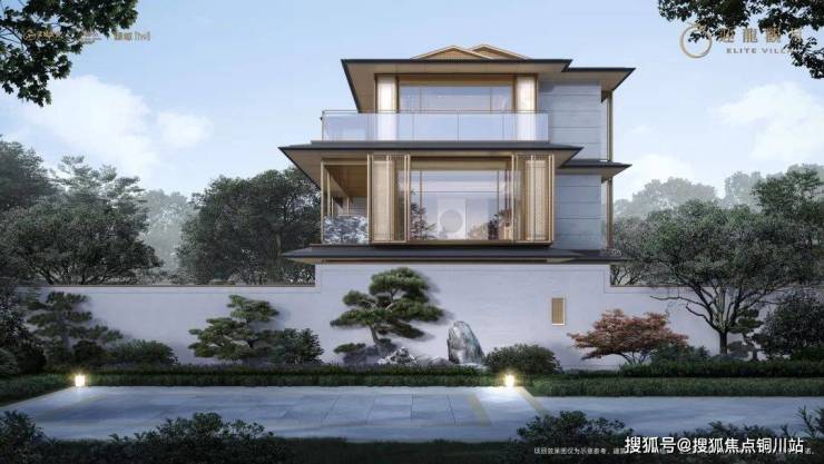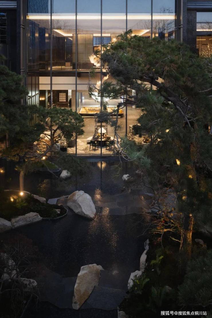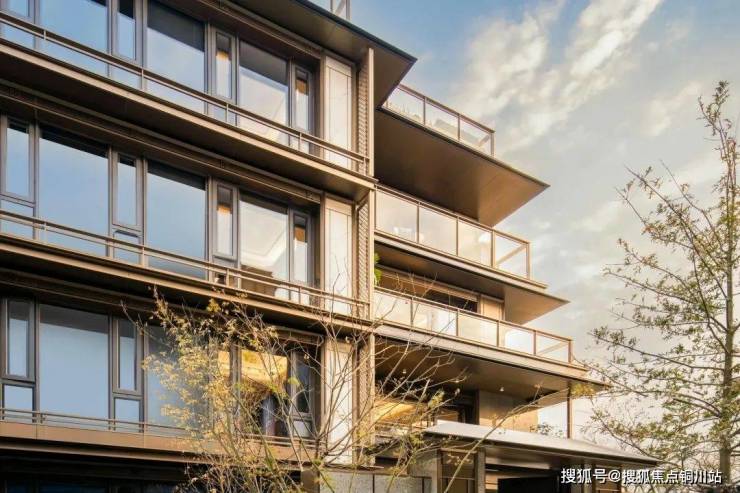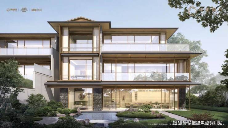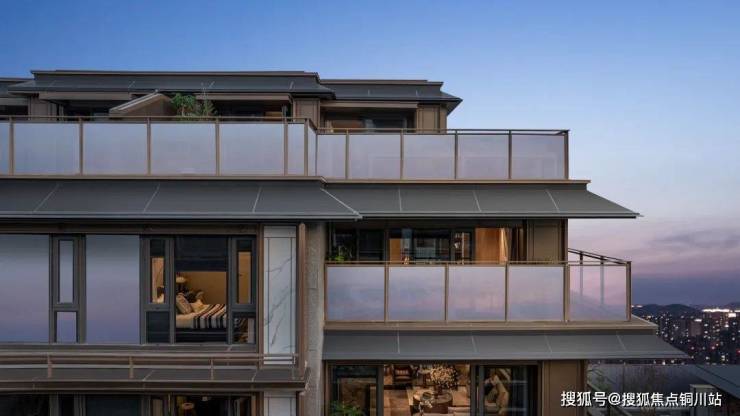 迎龙观月在叠墅设计中减少实墙,增加大面积玻璃面的使用,结合金属挂落、栏杆等纤细构件的应用,轻盈、通透、尊贵、典雅,营造出观景的极致舒适度。