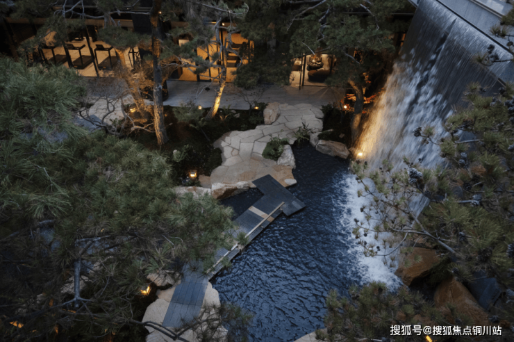 寄畅园以“大水宜分、小水宜聚”的原则,聚散结合,营造出流动的水景。迎龙观月传承寄畅园的理水手法,通过地形、桥梁、置石的巧妙布局分割水面,或缓流小溪,或静谧汪泉,展现出动静结合的美感,让空间愈发灵动,赋予“移步换景”的游园体验。