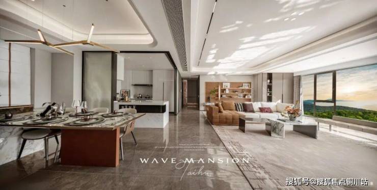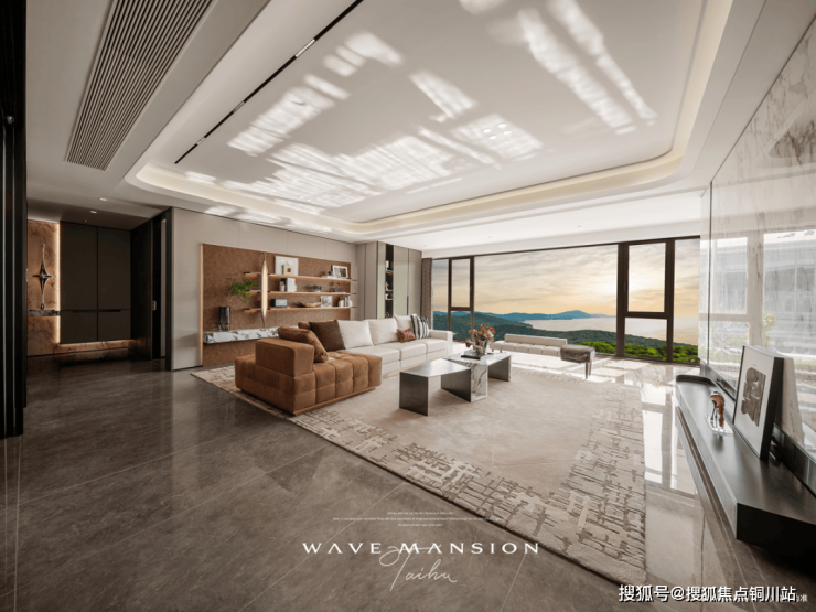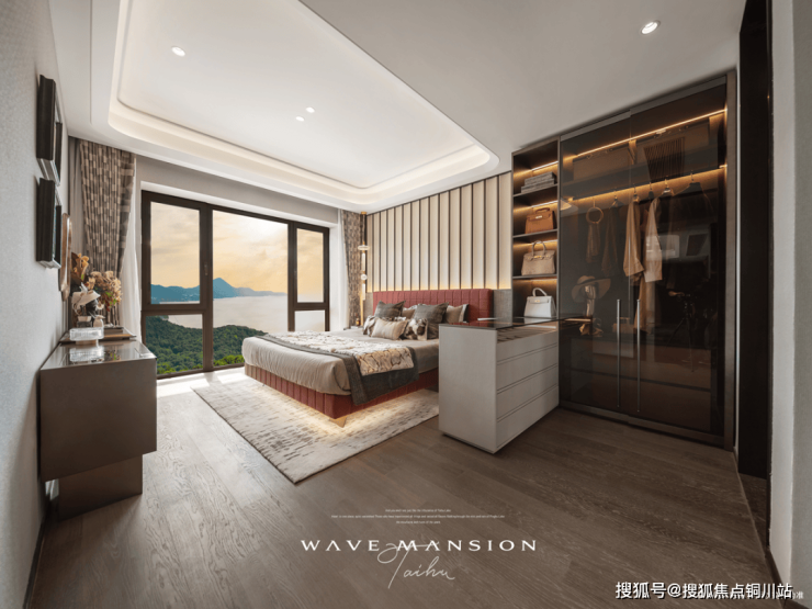 ③超大面宽。约16.6米、四开间朝南的超大面宽,配上约9.6米景观阳台以及L型采光设计,让家变为城市取景框,太湖、贡湖湾湿地公园等以4K级清晰度闯入生活。