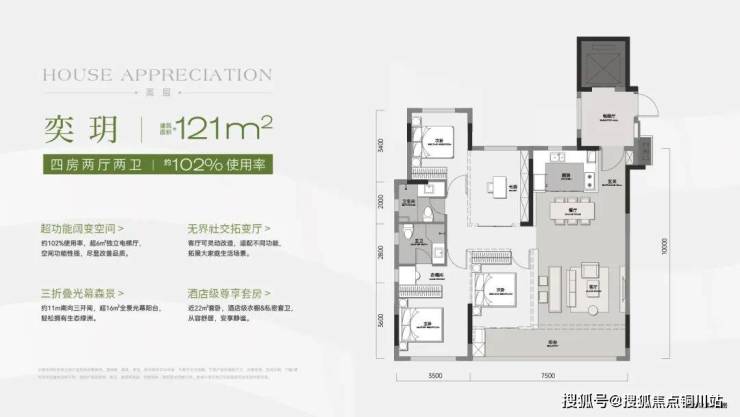 整体容积率2.0,定位低密小高层社区,主打95-140㎡户型,得房率宣称最高达112%。