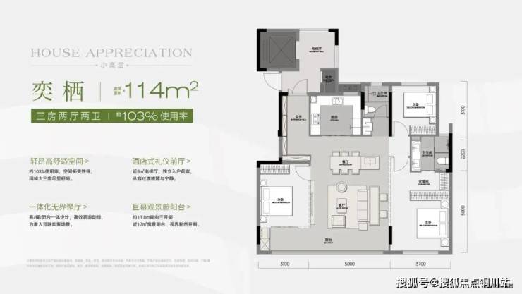 小高「奕栖」约114㎡三房两厅两卫/约103%使用率