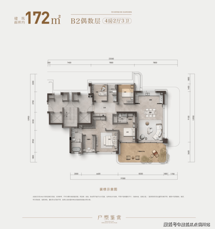建面约 172 ㎡ B2 户型,将空间艺术发挥到极致。约 30 ㎡、超 8 米南向面宽阔景露台,宛如一方私属庭院,让生活的诗意自然生长;约 8.6 米面宽南向主卧套房,将睡眠区、朝南独立衣帽间与卫浴融为一体,让同频星级酒店的奢享融入日常;多套房酒店式设计,确保了每位家人都能享有不被打扰的尊严与从容。