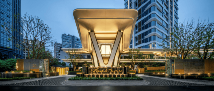 项目定制了高端幕墙体系外立面,引入鲩子湖的波光意韵,配合独特精致门头造型以及酒店式落客区,让归家“仪式感”满满。