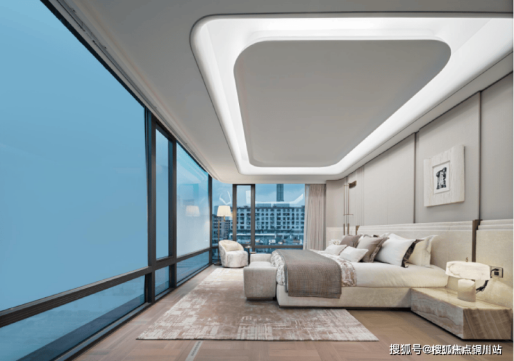 全面屏玻璃幕墙, 玻璃幕墙+金属铝板,几乎0漆墙面,以现代材料,还原东方美学意境,纯公建化立面,给业主更尊崇的身份标签;