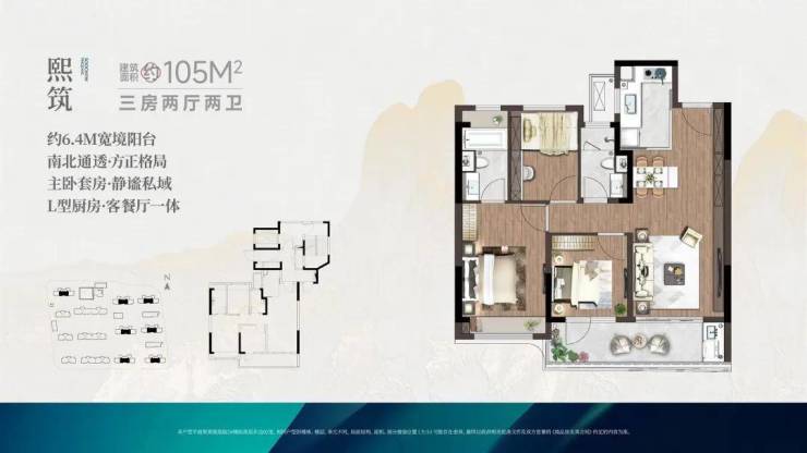 建面约105㎡ 三室两厅两卫