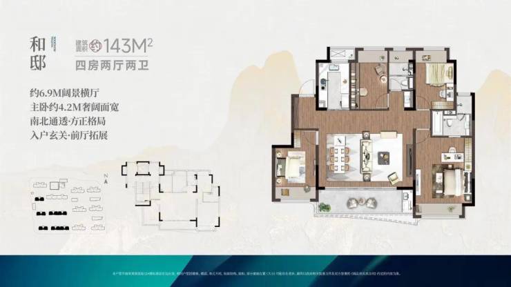 ✅6栋9-11F洋房,143㎡户型(四房两卫)、建筑面积169㎡户型(四房三卫);