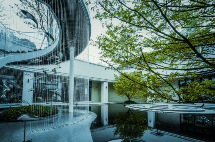 灵感来自明中时期竟陵山水风貌的《竟陵四境图》,将山林谷泉植入三进制的礼序空间里,突出归家动线的秩序感与尊贵感,步移景异,卸掉城市中的喧嚣,自然地将人推进山水画里。