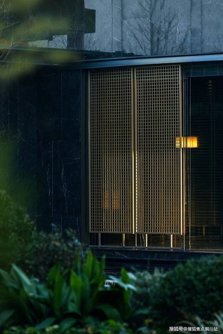 为了提升尊崇感,门廊正中设置了一方大面屏照壁,由1688片金属材拼接而成,照壁两侧挺立着两株高约4米,冠幅达6米的罗汉松,隐隐有着西子湖畔四季酒店的神韵。