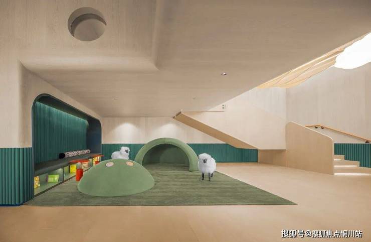 当孩子再大一些,这里还有专门的学习教室,家长们可以在这里办公,孩子就坐在边上看书写作业;阅读区的设计灵感源自茑屋书店,阶梯式的互动阅读区,无论是办一场亲子音乐会、小型观影会或是读书沙龙,都随心自如。