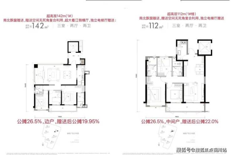 ✅户型:边户142户型(270°转角瞰江),中间户112户型