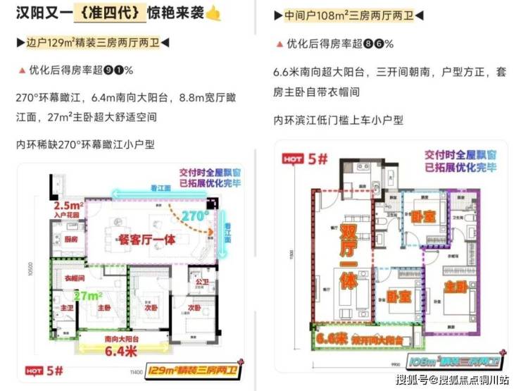 ✅户型:边户129户型(270°转角瞰江),中间户108户型