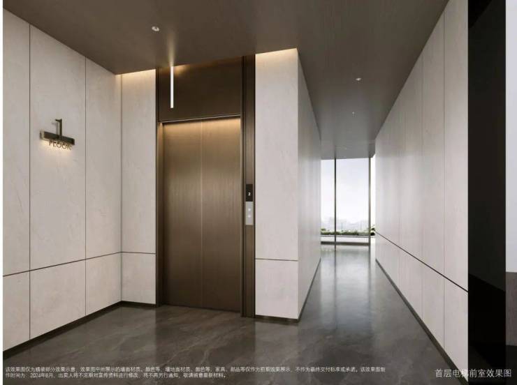 延续酒店式归家礼序路径,业主入户大堂采用全景落地玻璃窗设计,定制镜面门庭,由外至内景色辉映成趣,雅致又不失尊贵感。