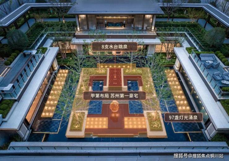 礼序水院的8支阵列跳泉、约25米长奢石跳泉水台,彰显出甲第打造“苏州第一豪宅”的立意。
