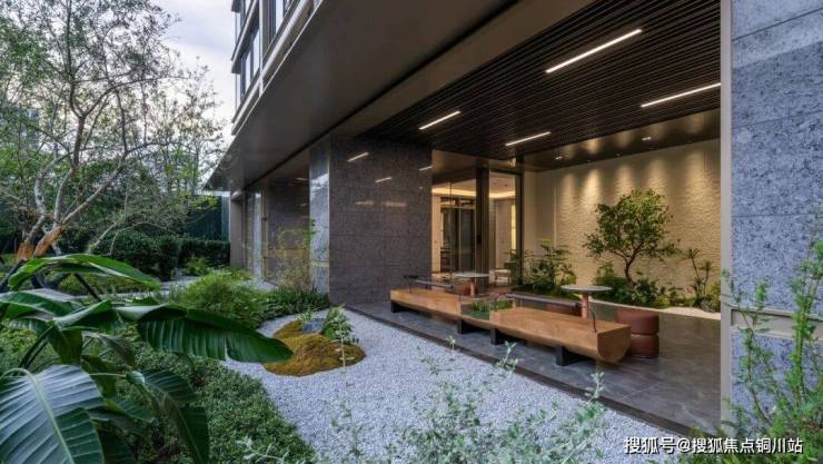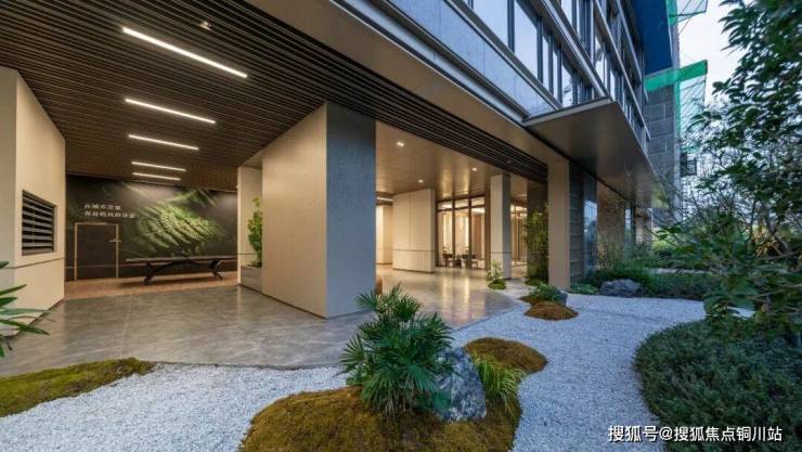 正式进入示范区,首先映入眼帘的,是近3000方的共享会客厅,作为三大中心花园之一,全世界甄选49种植被设计打造,层次丰富,搭配黑山石和水景,营造曲径通幽的归家之路,未来还能增加小业主对于植物的认知度。