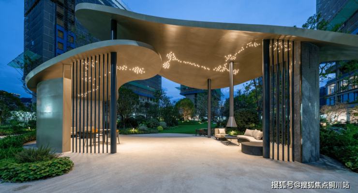 更值得一提的是这座丘山亭治愈休憩空间。施工难度极大,光是用整块铝板一体化所锻造的曲面亭顶,从建模、工厂加工,到现场一比一拼装,装饰锻造,团队工匠就耗时整整60天精细化研磨,大大增加公共空间质感,提升生活浓度。