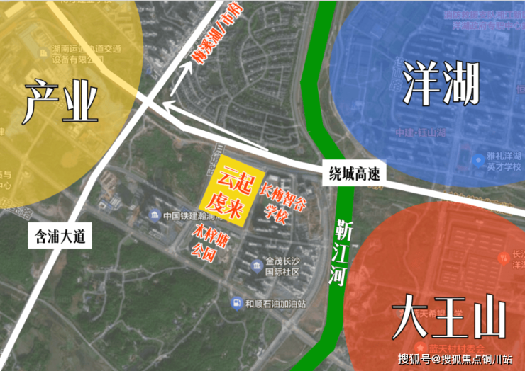 站在云起虔来的空中俯瞰,西侧约500米上含浦大道,可快速通达梅溪湖、市府;往东则可去大王山,直通洋湖,近享成熟利好。