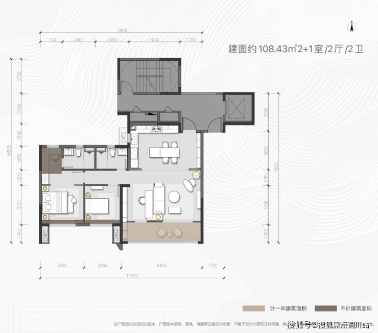 话说回来,铁刚的哥们儿也不要着急上火,项目还有建面约108㎡的2+1房小面积:
