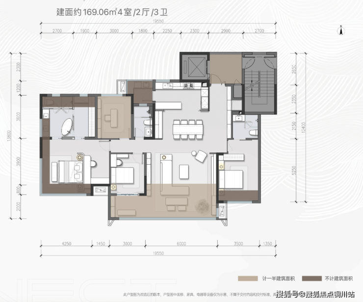 当然,如果你预算充足,想一次性改善到位,我建议你看看这个建面约169㎡的洋房: