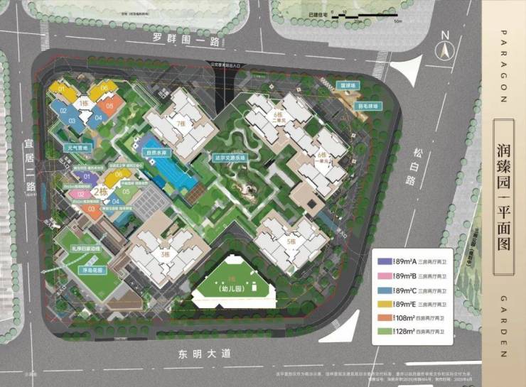 2栋位于社区中轴核心,一路之隔九年一贯制学校,外瞰明湖公园(部分户型),内揽景观中轴,下楼即商业街,繁华与静谧兼得。