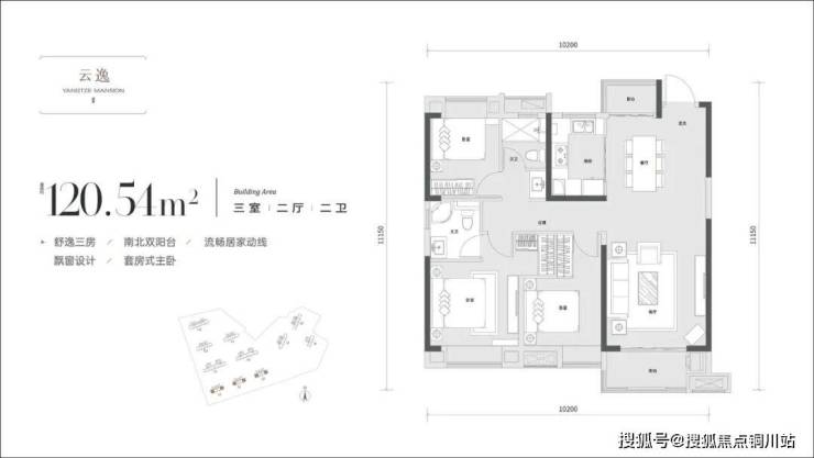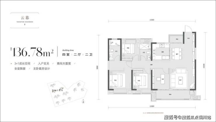 这个户型是上面建面约100㎡户型的升级版,整体结构比较接近,但面积更大,室内空间感和居住舒适度有提升。
