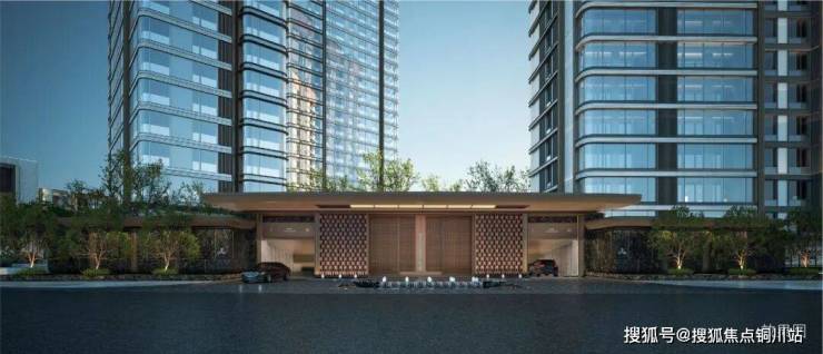 外立面设计上,采用的是鎏金冠冕公建化外立面,以对称美学+极简玻璃幕墙刻画恢弘气势与通透视觉。