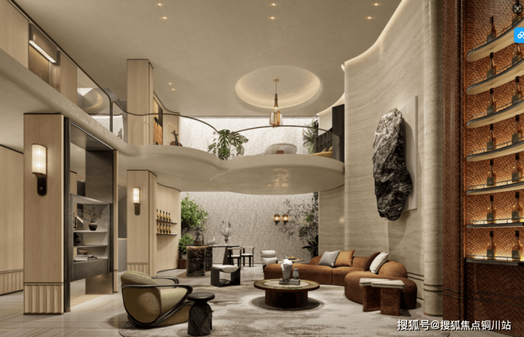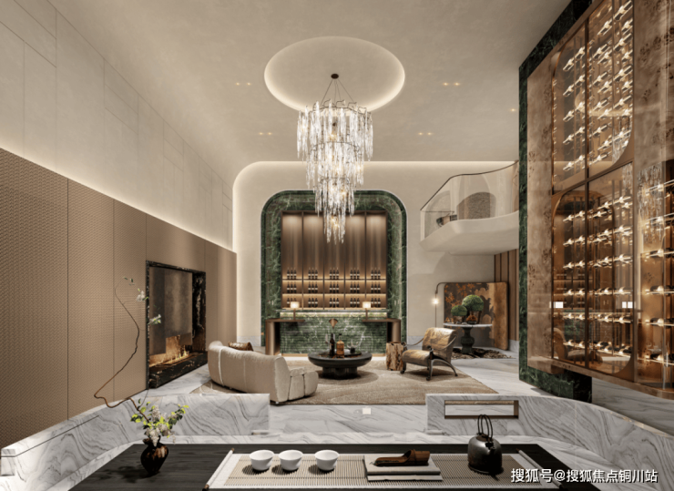 白日里,下层化作私藏酒窖,陈放岁月佳酿,木质酒架映着暖光,每一瓶酒都藏着时光的故事;上层设为影音茶室,邀三五好友,煮一壶清茶,看一场老电影,茶香与光影交织,褪去尘世浮躁。约6米挑高的通透感,让地下空间亦有天光与清风相伴,无半分压抑,只剩满心安然。