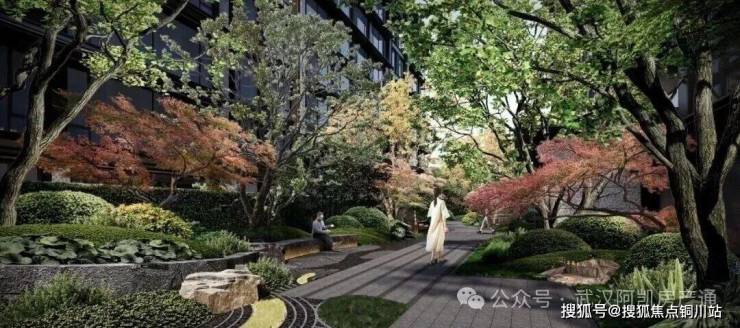 🔹低密园林景观采用“一轴三阡五园六院”的设计巧思。一条中央景观主轴贯穿全区,三条阡陌巷道铺陈其间,串联起五大核心园景,六重静谧庭院巧妙融汇低密森境,以无界视野消弭建筑与自然的界限。