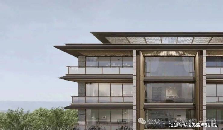 🔹摒弃传统中式建筑的繁复形态,采用极简挑檐勾勒出优雅天际线,自然呈现东方写意风格;暗金色铝板屋顶、金色铝型材阳台顶部,搭配蓝灰色 low-E玻璃+夹胶玻璃的南向超高窗墙,再以蓝眼睛石材与干挂石材切分建筑形态,层次井然,质感尽显,共同塑造出承载东方美学的立体载体。