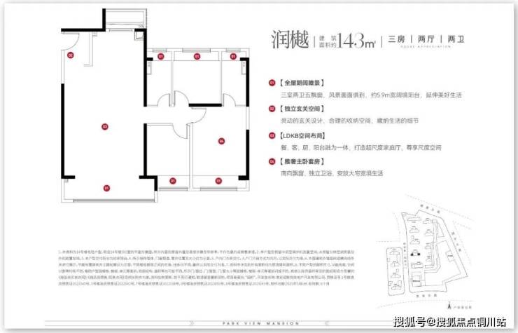 三室两卫五飘窗,约5.9m宽阳台,独立玄关空间