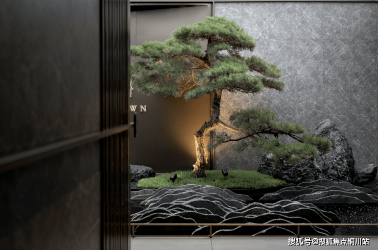 以水为笔,飞泉之下,苍石抱松,青松相映成趣,以自然画境营造礼遇归家,构建东方美学生活场景。