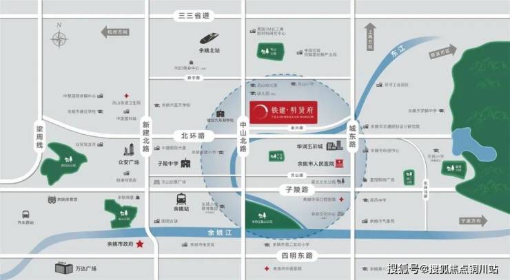 中国铁建择址余姚城市之芯,依托“两横三纵” (两横:子陵路、北环路;三纵:新建路、梁周线、城东路)城市繁华路网之上,擎领城市速度,起笔余姚老城区与北部新城双城核心,同频南北发展脚步,接驳时代万千繁华。