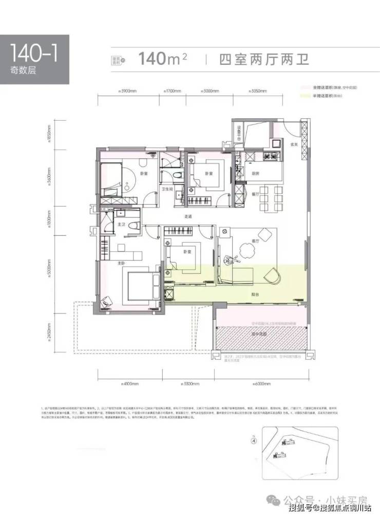 140平偶数层户型格局与奇数层比较类似,主要是空中花园位置不一样。